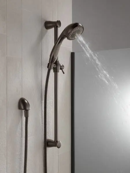 - 69″ long hose for a long reach within the shower.