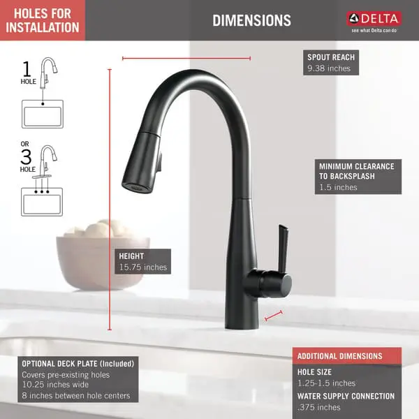 DELTA 9113-BL-DST ESSA 1-HANDLE PULL DOWN KITCHEN FAUCET MATTE BLACK