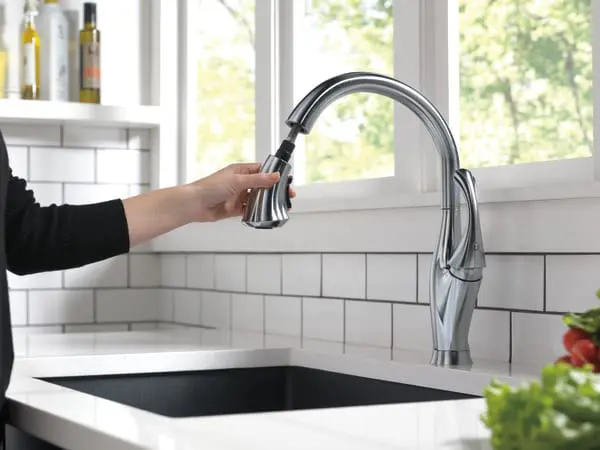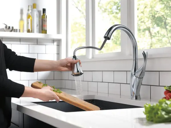 • The high-arc, gooseneck design swivels 360 degrees with a 20-in. retractable hose for added convenience during everyday kitchen tasks