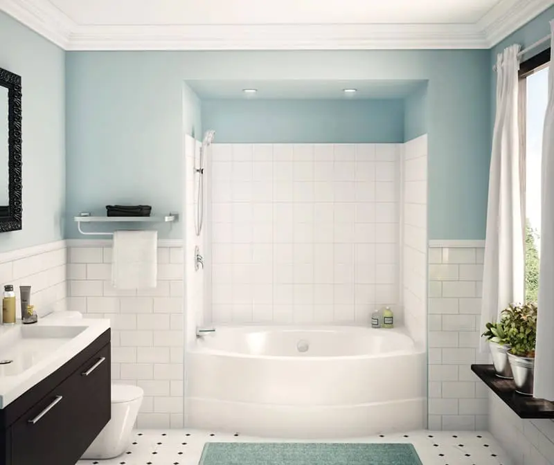 • One-piece tub shower with 6 in. simulated tile pattern